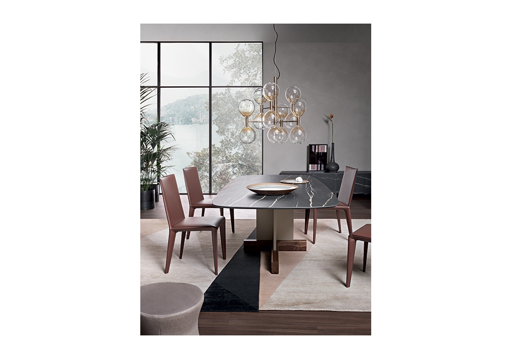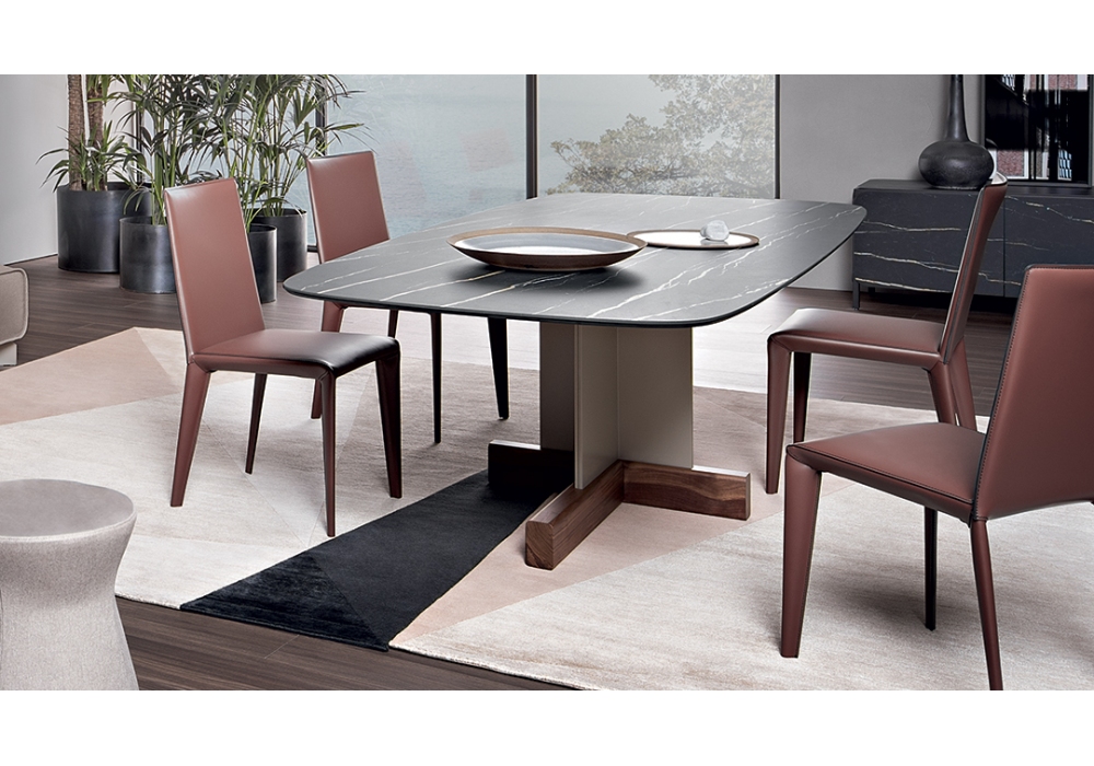Cross Table von Alain Gilles für Bonaldo entworfen, ist ein Tisch mit einer Platte aus verschiedenen Materialien, einem zentralen Sockel aus in verschiedenen Farben lackiertem Metall und einem unteren Kreuz aus Massivholz in 3 Ausführungen. Erhältlich in 2 Größen.