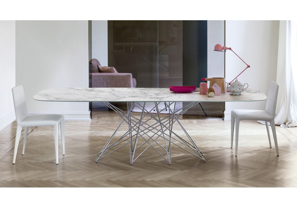 Octa von Bartoli Design für Bonaldo entworfen, ist ein rechteckiger Tisch mit Platte aus verschiedenen Materialien und Basis aus matt lackiertem Metall in verschiedenen Farben. Erhältlich in verschiedenen Größen.