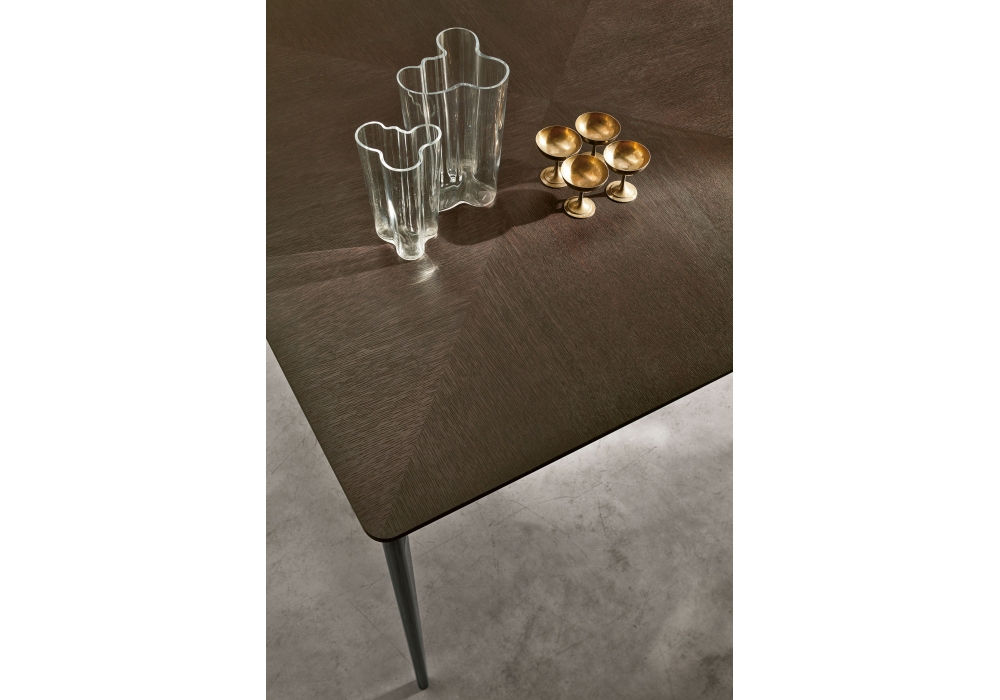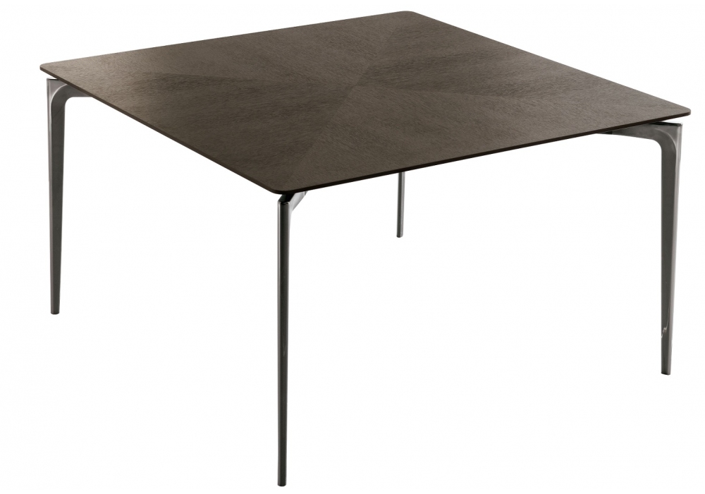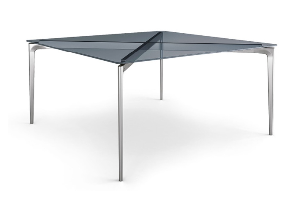 Liuto von Giuseppe Bavuso für Alivar entworfen, ist ein quadratischer oder rechteckiger Tisch mit Beinen aus verchromtem, lackiertem oder schwarz vernickeltem Aluminiumguss. Platte aus gehärtetem Rauchglas, wärmebehandelter Eiche oder schwarzen Keilen, italienischem Nussbaum, Marmor oder Keramik in Verbindung mit extraklarem transparentem Glas. Verfügbar in mehreren Ausführungen und Abmessungen.