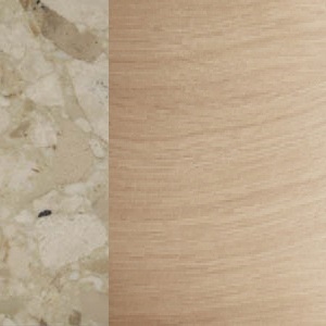 Androgyne 120 von Danielle Siggerud für Audo Copenhagen entworfen, ist ein runder Tisch mit Eichenbasis und Platte in der gleichen Ausführung wie die Basis oder aus Kunis-Brekzienstein. Erhältlich in verschiedenen Ausführungen.
