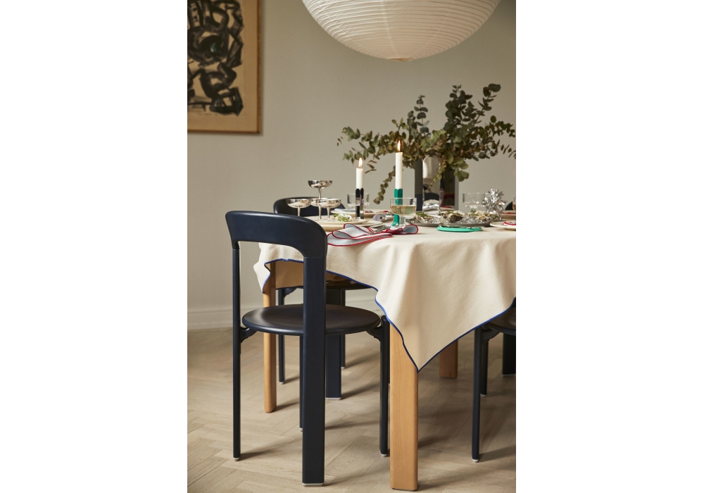 Rey von Bruno Rey & Hay für Hay entworfen, ist ein Tisch mit Platte aus Laminat oder Furnier und Kante aus ABS oder Furnier. Beine aus massiver Buche. Verfügbar in verschiedenen Ausführungen.