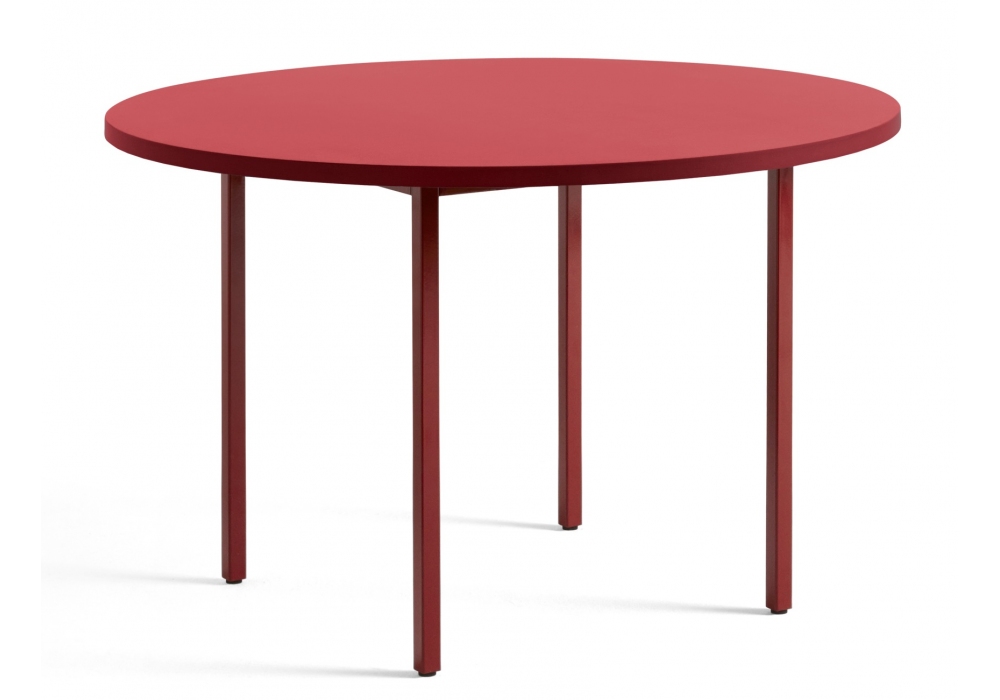 Two-Colour von Muller Van Severen für Hay entworfen, ist ein Tisch mit Platte aus Valchromat und Beinen aus halbglänzend lackiertem Stahlrohr. Verfügbar in verschiedenen Ausführungen und Abmessungen.