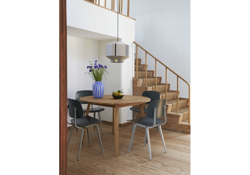 Triangle Leg von Simon Jones für Hay entworfen, ist ein Tisch aus massiver Eiche mit Stützstangen, die unter der Tischplatte montiert sind. Verfügbar in verschiedenen Ausführungen und Abmessungen.