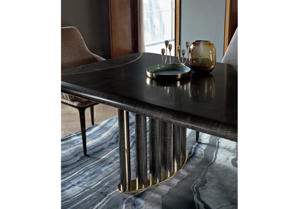 Oliver von Castello Lagravinese Studio für Opera Contemporary entworfen, ist ein rechteckiger Tisch aus Frisé-Ahorn mit Metalleinsätzen. Verfügbar in mehreren Abmessungen.