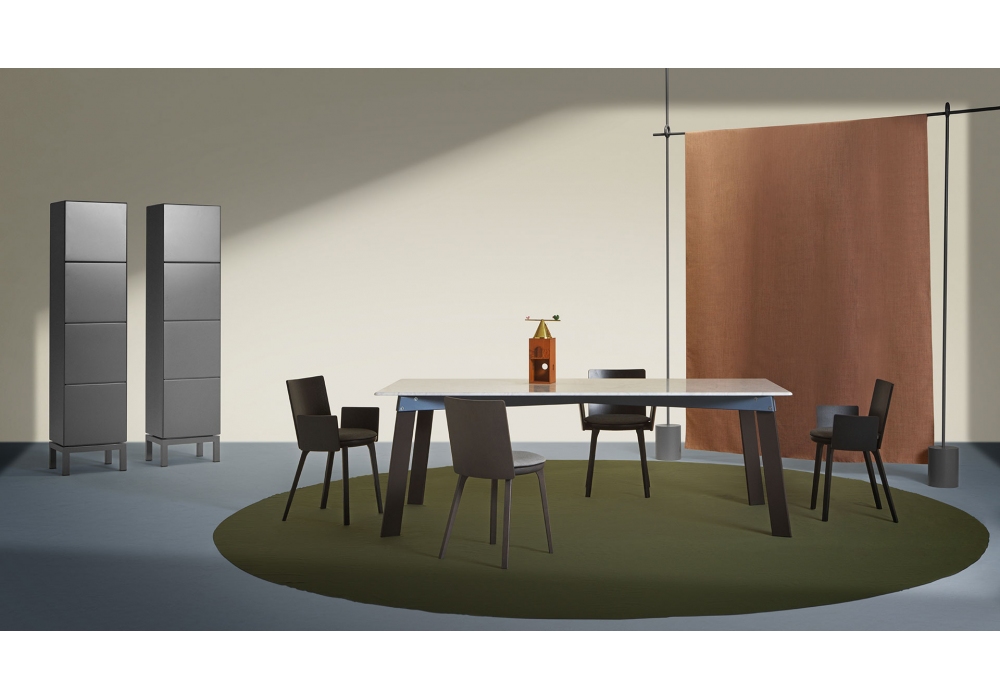 Aronte Quadrangular von Giulio Iacchetti für My Home Collection entworfen, ist ein viereckiger Tisch mit Struktur und Beinen aus lackiertem Stahl. Die Platte ist aus kratzfest lackiertem MDF oder aus Marmor. Aronte Quadrangular ist in verschiedenen Ausführungen erhältlich.