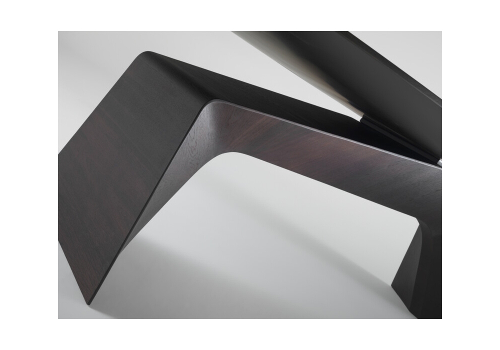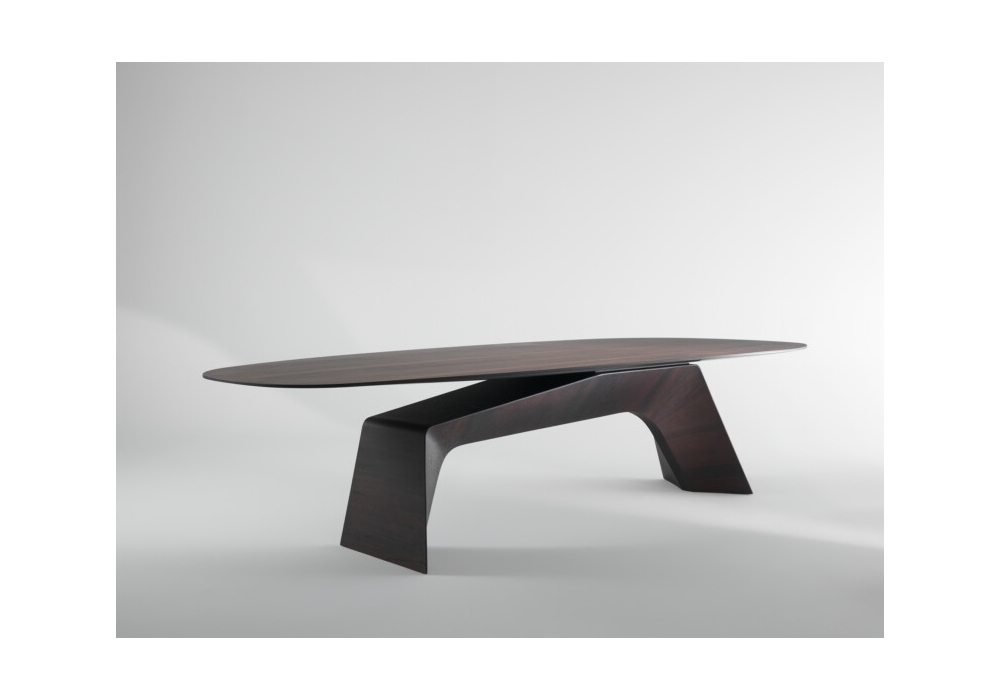 Kintai von Ferruccio Laviani für Emmemobili entworfen, ist ein Tisch mit Platte aus furniertem Sperrholz und lackierter Unterplatte, das Bein besteht aus einem einzigen Block aus geformtem furniertem Sperrholz. Erhältlich in verschiedenen Größen und in verschiedenen Ausführungen.