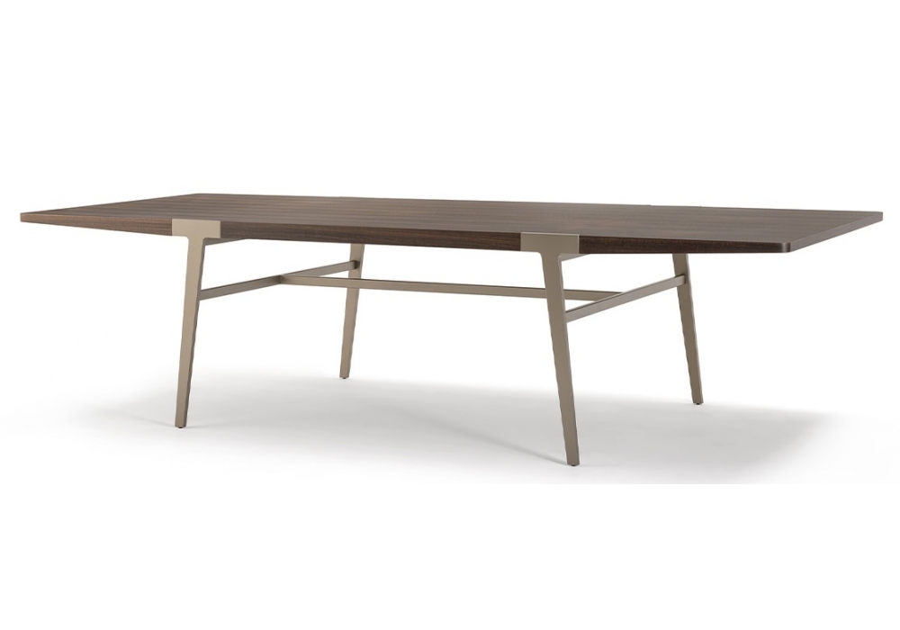 Domus von Matteo Nunziati für Turri entworfen, ist ein Tisch mit Platte aus wärmebehandeltem Eukalyptus furniertem Holz und Beinen aus mattem hellem Platinmetall. Die Version mit Platte mit Marmoreinsätzen ist auf Anfrage erhältlich. Verfügbar in mehreren Abmessungen.