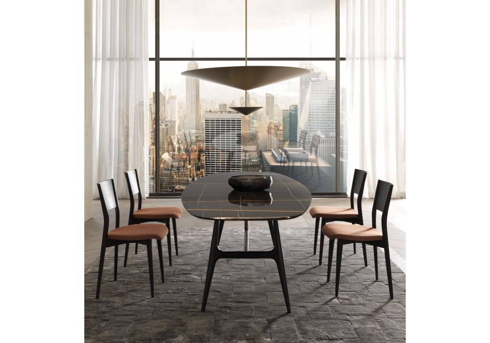 Gaudì von Ferruccio Laviani für MisuraEmme entworfen, ist ein Tisch mit Basis aus gebeizter massiver Eiche und Platte aus Holz in der gleichen Ausführung wie die Basis oder aus Marmor. Verfügbar in mehreren Ausführungen und Abmessungen.