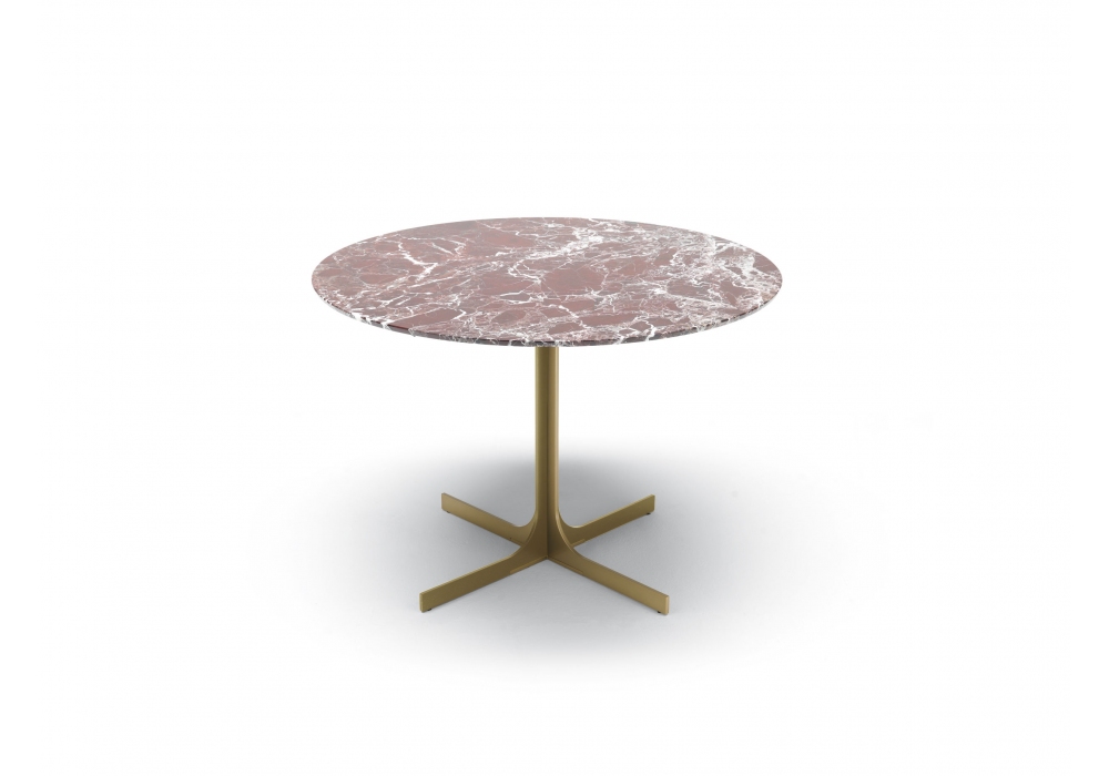 Janus Lounge von Francesco Lucchese für MisuraEmme entworfen, ist ein Tisch mit einer Struktur, die durch eine Verbindung von zwei doppelten "C" aus Metall gekennzeichnet ist, um ein Kreuz zu bilden, in Nickel-Gold-Finish. Platte aus Marmor, matt oder glänzend oder aus Glas. Verfügbar in mehreren Ausführungen.