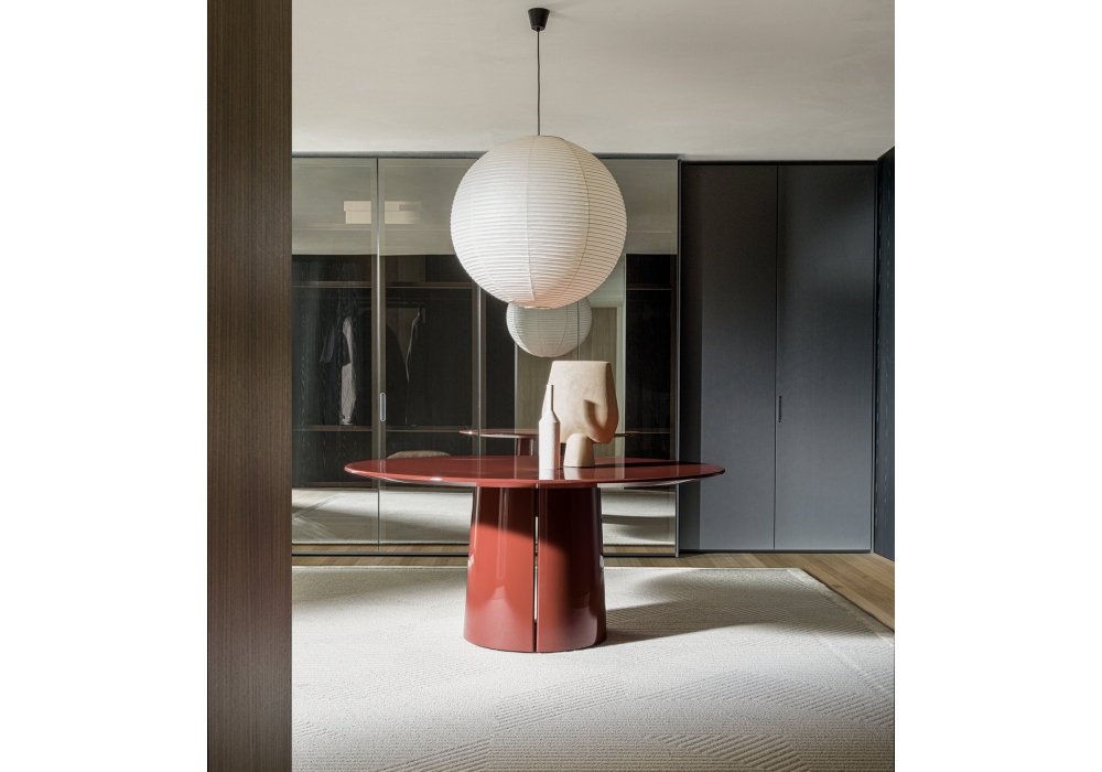 Mateo von Vincent Van Duysen für Molteni&C entworfen, ist ein Tisch mit Basis aus Holz, glänzend lackiert oder matt lackiert, brüniert. Platte aus Eiche, Marmor mit mattem Finish oder glänzendem Polyester oder glänzend lackiert im gleichen Finish wie die Basis. Verfügbar in mehreren Ausführungen und Abmessungen.