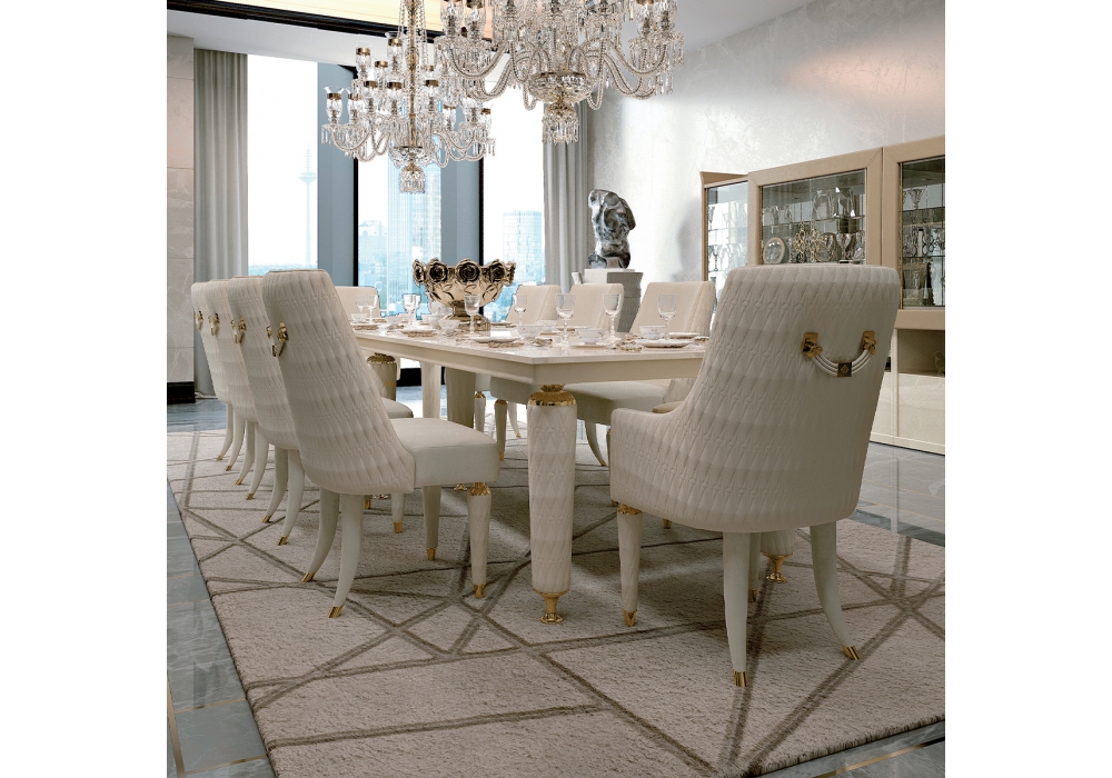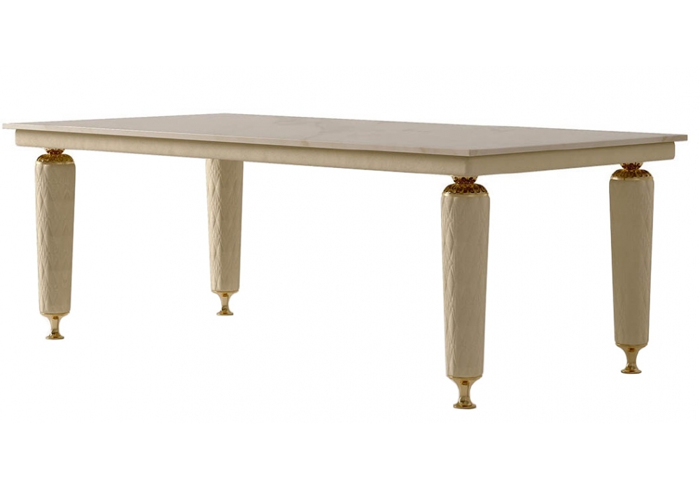 Numero Tre von Roberto Serio für Turri entworfen, ist ein Tisch mit Struktur und Platte aus MDF und Spanplatten mit glänzender Oberfläche. Bestickte Lederbeine und goldene Metalldetails. Verfügbar in mehreren Abmessungen.