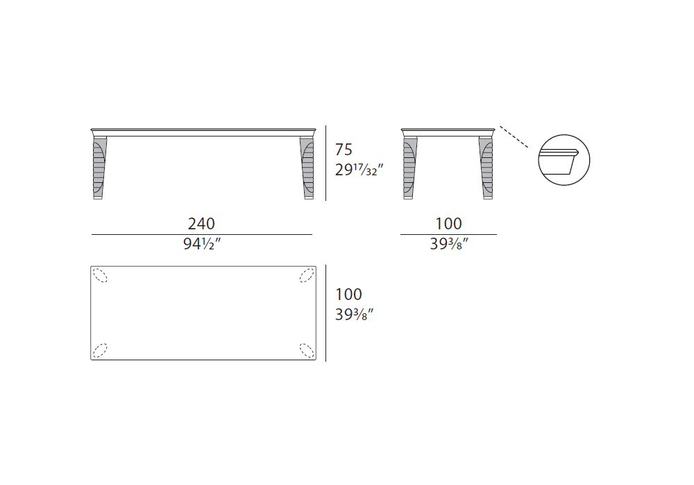 Vogue von Andrea Bonini für Turri entworfen, ist ein Tisch mit Beinen aus Massivholz, die mit verschiedenen Ledern bezogen sind, Ober- und Unterseite aus glänzend lackiertem MDF oder Marmor. Auf Anfrage ist er auch in der Abmessung 350 x 110 x H 75 mit einer glänzend lackierten Holzplatte verfügbar.