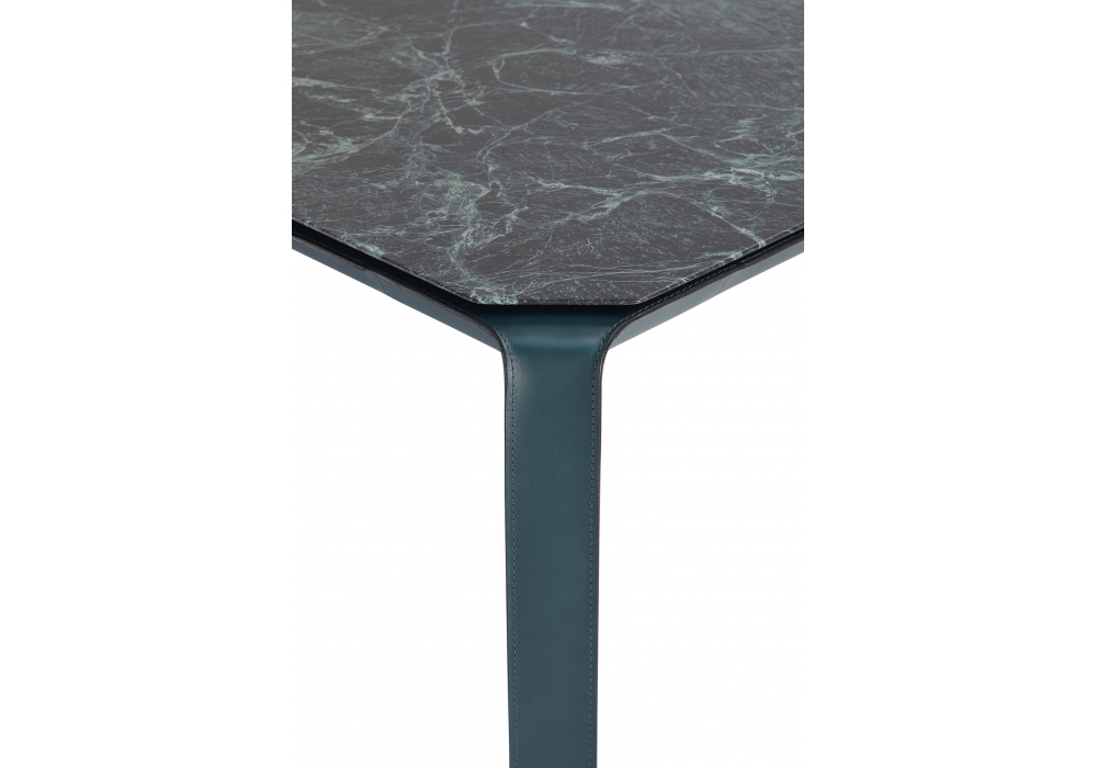 Cab Tab von Mario Bellini für Cassina entworfen, ist ein Tisch mit Lederstruktur in natürlichen Farbtönen, Auswahl an Rot, Schwarz und Braun, Grün und Blau und Holz- oder Marmorplatte. Verfügbar in mehreren Ausführungen und Abmessungen.