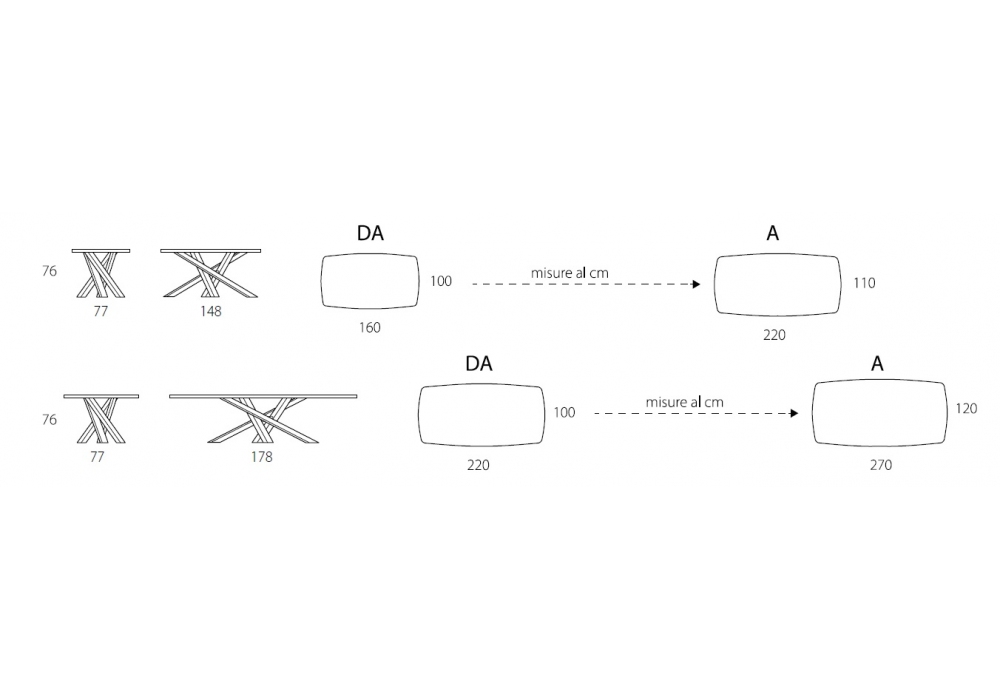 | Abmessungen | variabel von 160 x 100 x H 76 cm bis 220 x 110 x H 76 cm; variabel von 220 x 100 x H 76 cm bis 270 x 120 x H 76 cm. |