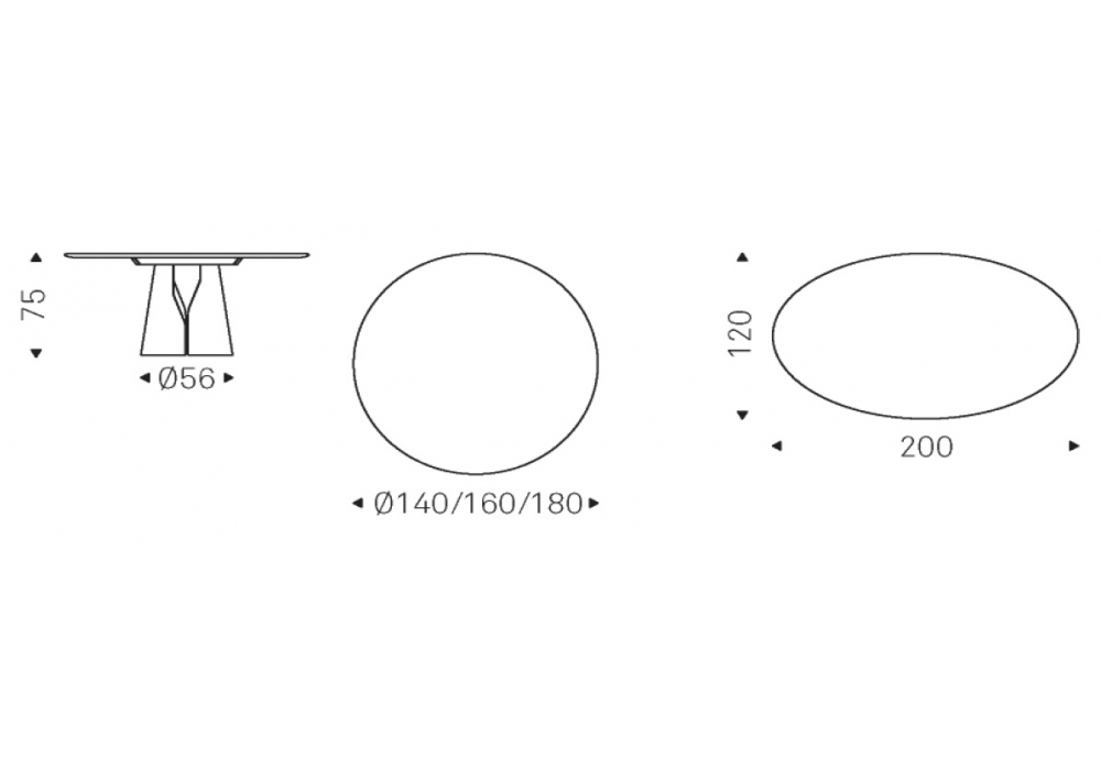 | Abmessungen | • Ø 140 x H 75 cm; • Ø 160 x H 75 cm; • Ø 180 x H 75 cm; • 200 x 120 x H 75 cm |