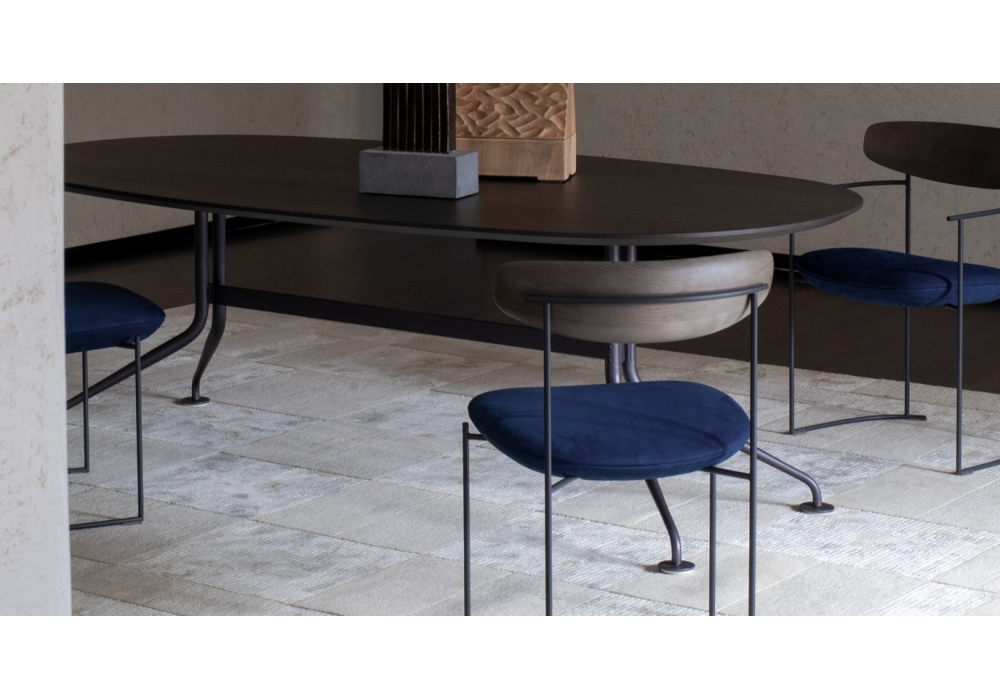 Agra von Enrico Franzolini für Potocco entworfen, ist ein Tisch mit lackiertem Metallgestell und Eschenplatte in verschiedenen Ausführungen.