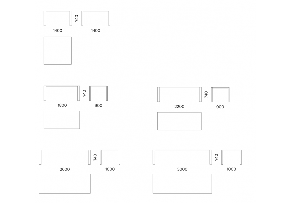 | Abmessungen | 140 x 140 x H 74.1 cm; 180 x 90 x H 74.1 cm; 220 x 90 x H 74.1 cm; 260 x 100 x H 74.1 cm; 300 x 100 x H 74.1 cm. |