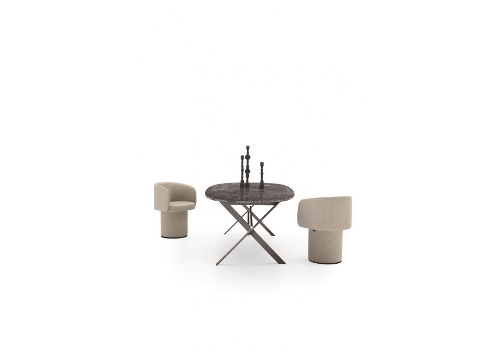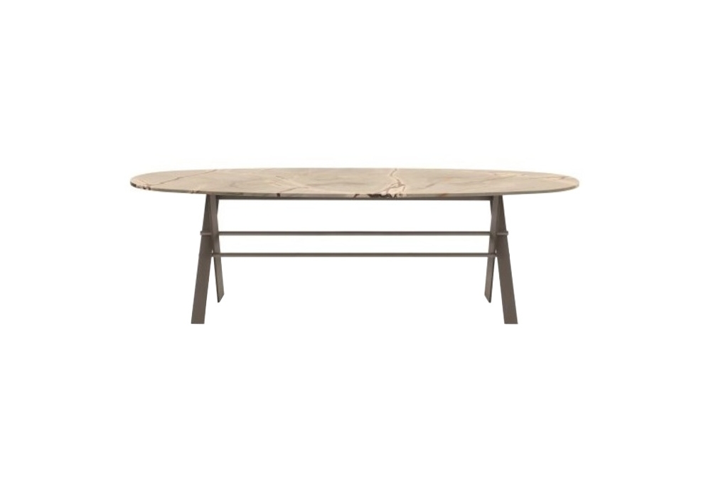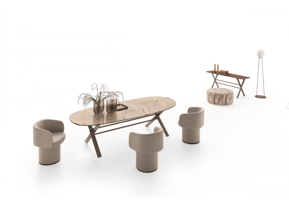 XCS von Gabriele und Oscar Buratti für Ditre Italia entworfen, ist ein Tisch mit Metallgestell mit Ionx-Stahlspitze, Platte aus Marmor oder Holz. Erhältlich in verschiedenen Ausführungen und Größen.