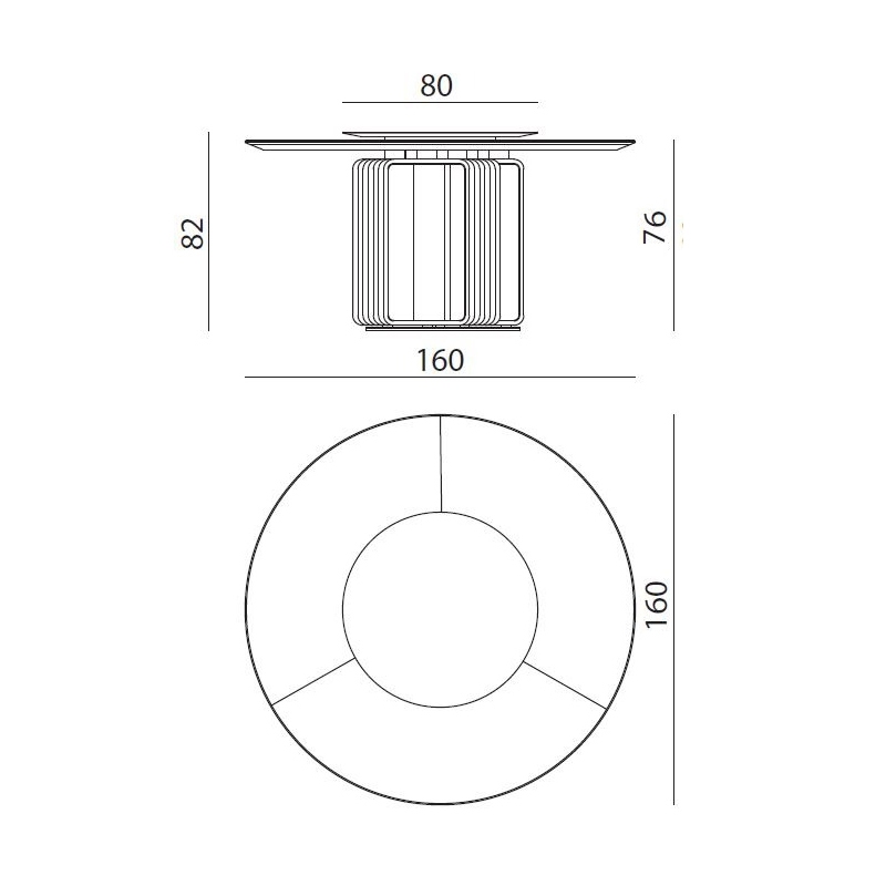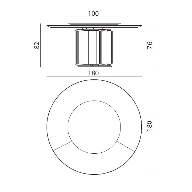 Kylo ist mit einer Tischmitte von Ø 80 oder Ø 100 cm erhältlich, fragen Sie die gewünschte Größe an.
