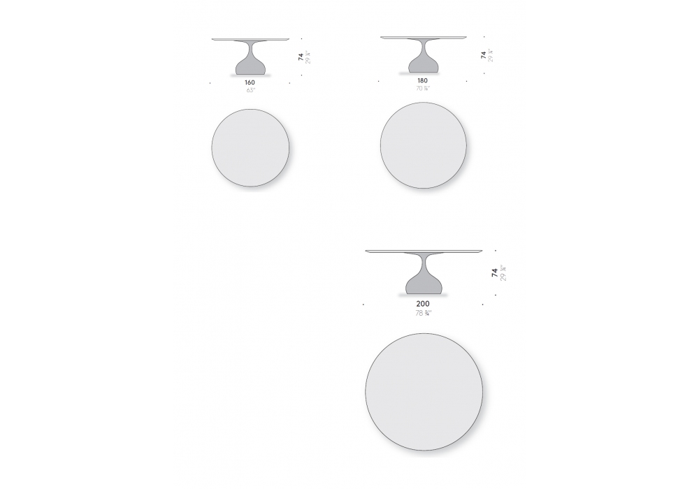 | Abmessungen | Ø 160 cm x H 74 cm; Ø 180 cm x H 74 cm; Ø 200 cm x H 74 cm. |