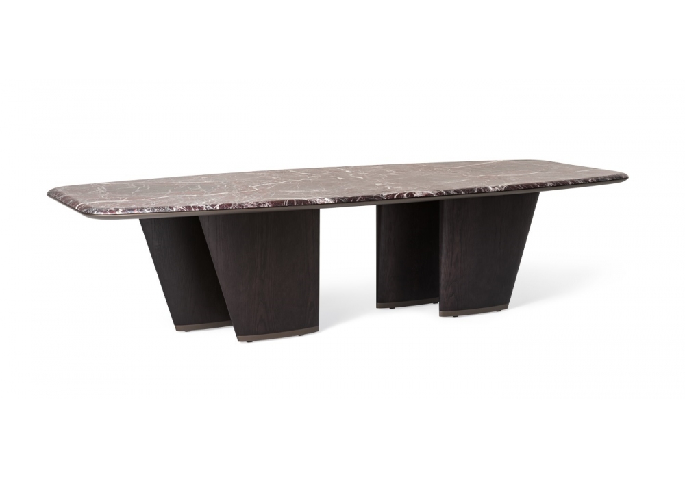 Mistral von Dainelli Studio für Giorgetti entworfen, ist ein Tisch mit runder oder rechteckiger Platte aus Esche oder Marmor, Struktur aus Esche. Erhältlich in verschiedenen Ausführungen und Größen.