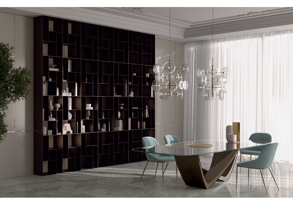 53.77 Bach von Andrea Lucatello für Bontempi entworfen, ist ein fester Tisch mit lackierter Stahlstruktur, transparentem Glas oder SuperMarble-Platte. Erhältlich in verschiedenen Ausführungen.