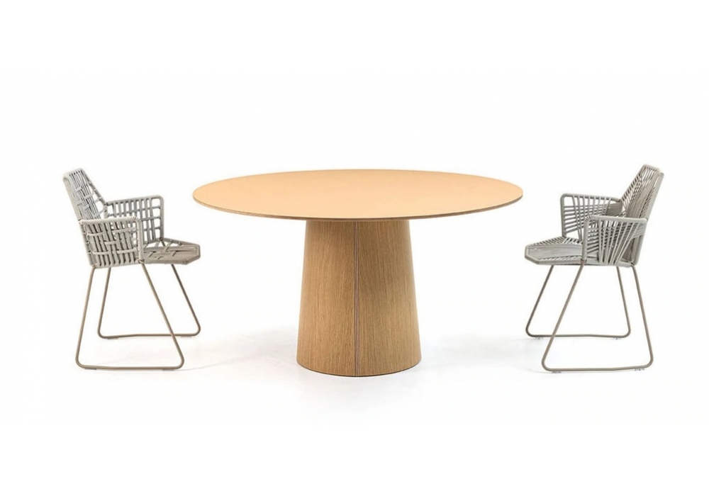 Vol von Stefan Scholten für Moroso entworfen ist ein Holztisch mit einer runden Platte aus Linoleum oder Ökoton, während die Basis immer aus konischem Holz besteht. Vol ist in verschiedenen Ausführungen und Modellen erhältlich.