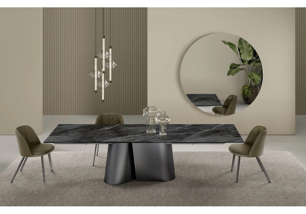 Kimono von E-Ggs für Bontempi entworfen, ist ein Tisch mit lackierter Stahlstruktur, Platte aus Holz, SuperMarble oder Kristall. Erhältlich in verschiedenen Ausführungen und Größen.