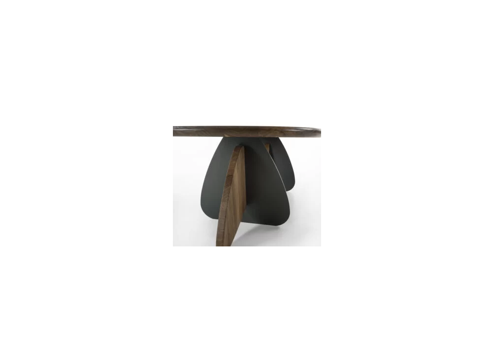 Cross von Carlesi Tonelli für Riva 1920 entworfen, ist ein Tisch mit einer Massivholzplatte mit verleimten Latten mit abgeschrägten Kanten, gekennzeichnet durch zwei Beine, eines aus Eisen und das andere aus Holz. Verfügbar in mehreren Ausführungen und Abmessungen.