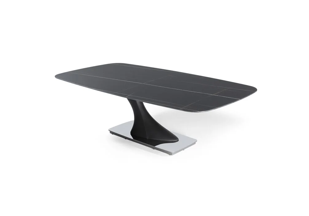Archimede 72 von Riccardo Lucatello für Reflex Angelo entworfen, ist ein Tisch mit Metallstruktur und -platte, Beinen mit Lederbezug und Tischplatte aus Marmoreflex/Legnoreflex. Verfügbar in mehreren Ausführungen und Abmessungen.