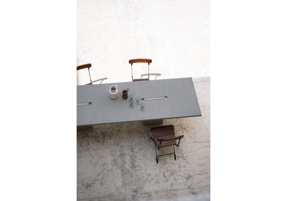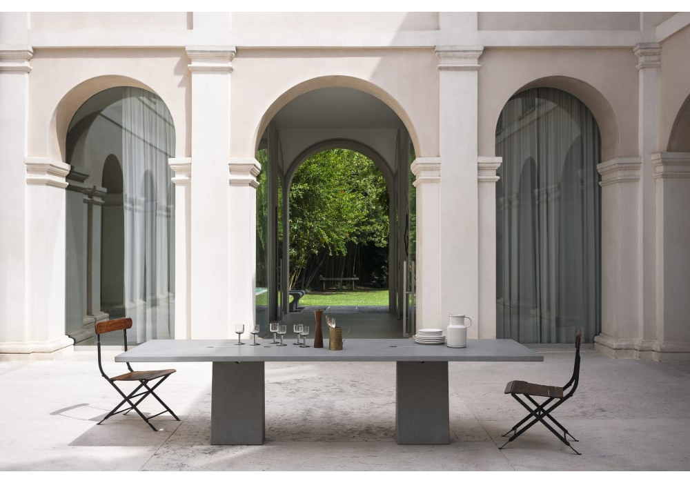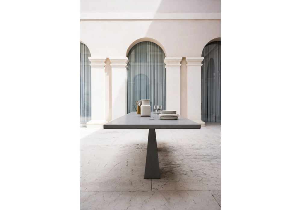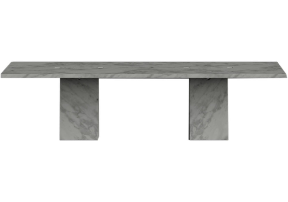 Incas von Angelo Mangiarotti für Agapecasa entworfen, ist ein Tisch aus Marmor in verschiedenen Ausführungen. Die Stützen mit quadratischer Form passen in die Platte.