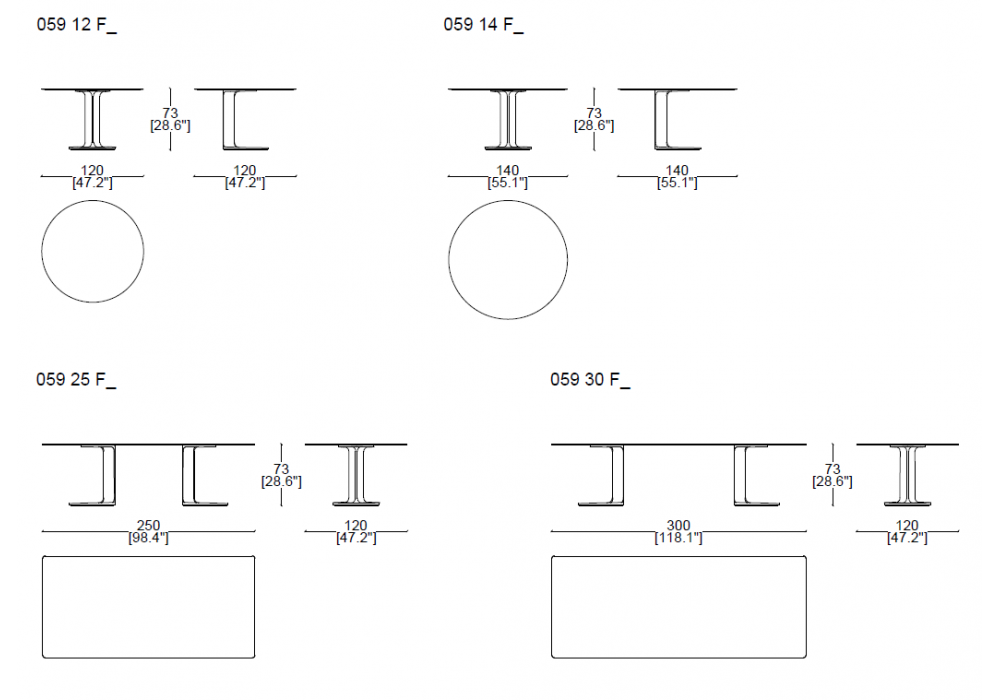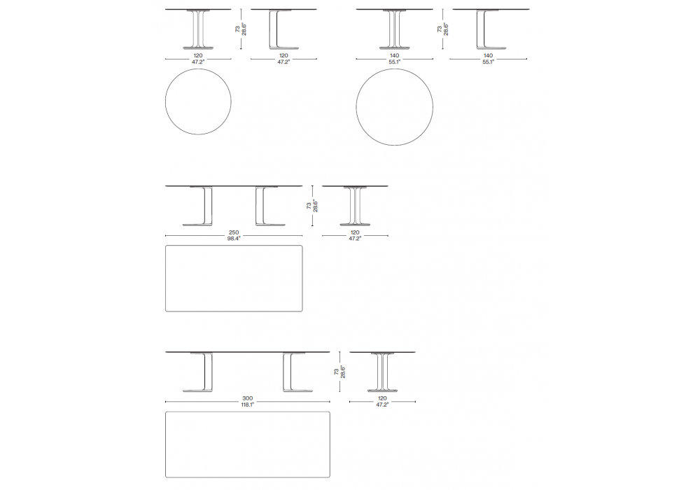 | Abmessungen | Ø 120 x H 73 cm; Ø 140 x H 73 cm; 250 x 120 x H 73 cm; 300 x 120 x H 73 cm. |