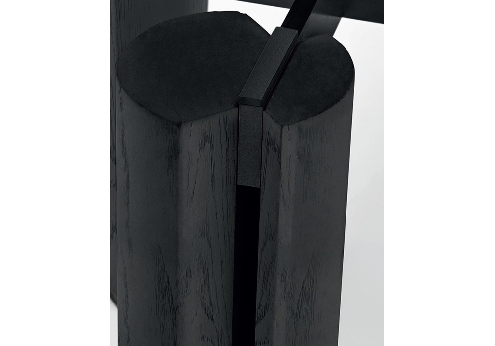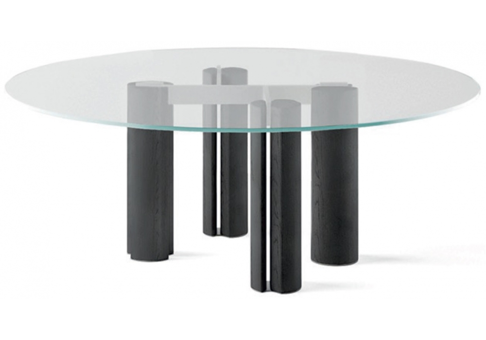 Simpòdio W von Pinuccio Borgonovo für Gallotti&Radice entworfen, ist ein Tisch mit Platte aus vorgespanntem Glas 12mm, lieferbar Extralight, Rauchglas “grigio Italia” oder in exklusiver Art und Weise verarbeitet in der Ausfuhrung Antik Bronze oder Blei. Auch in der Version mit 20 mm starkem, matt geschliffenem Nero Marquinia-Marmor lieferbar (nur für Ø 120 cm, Ø 140 cm, Ø 160 cm, Ø 180 cm). Untergestell aus offenporiger, schwarz gebeizter massiver Eschenholz. Metallteile “Gunmetal” lackiert.