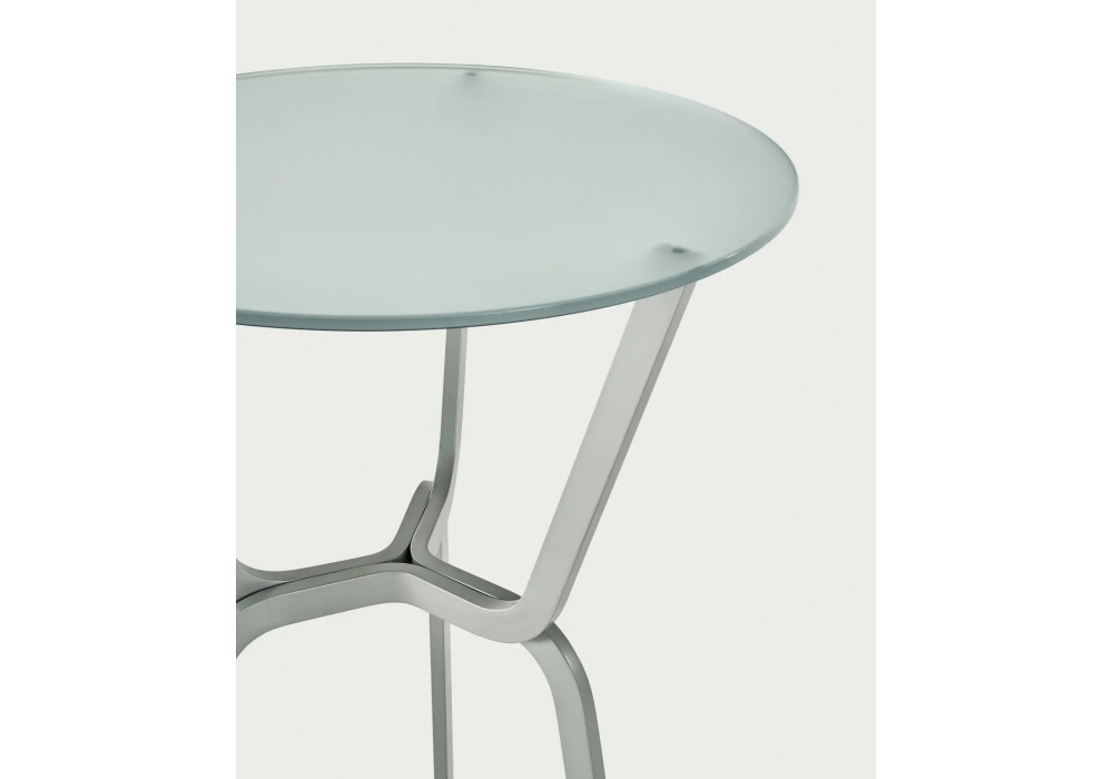 Roots von Arik Levy für Baleri Italia entworfen, ist ein runder Bartisch mit einer Struktur aus Aluminium, lackiert mit Epoxidpulvern in den angegebenen Farben. Magnetisch verbundene Struktur, die vollständig zerlegt werden kann. Tischplatte erhältlich aus klarem, transluzent geätztem oder rauchig geätztem gehärtetem Glas (10 mm dick). Endelemente aus schwarzem Wollfilz.
