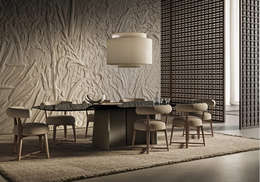 Tara von Sebastian Herkner für Flexform entworfen, ist ein Esstisch mit Gestell aus durchgefärbtem, faserverstärktem Beton mit sichtbarer Gesteinskörnung. Die Tischplatte ist verfügbar in verschiedenen Ausführungen. Auch verfügbar in verschiedenen Größen.