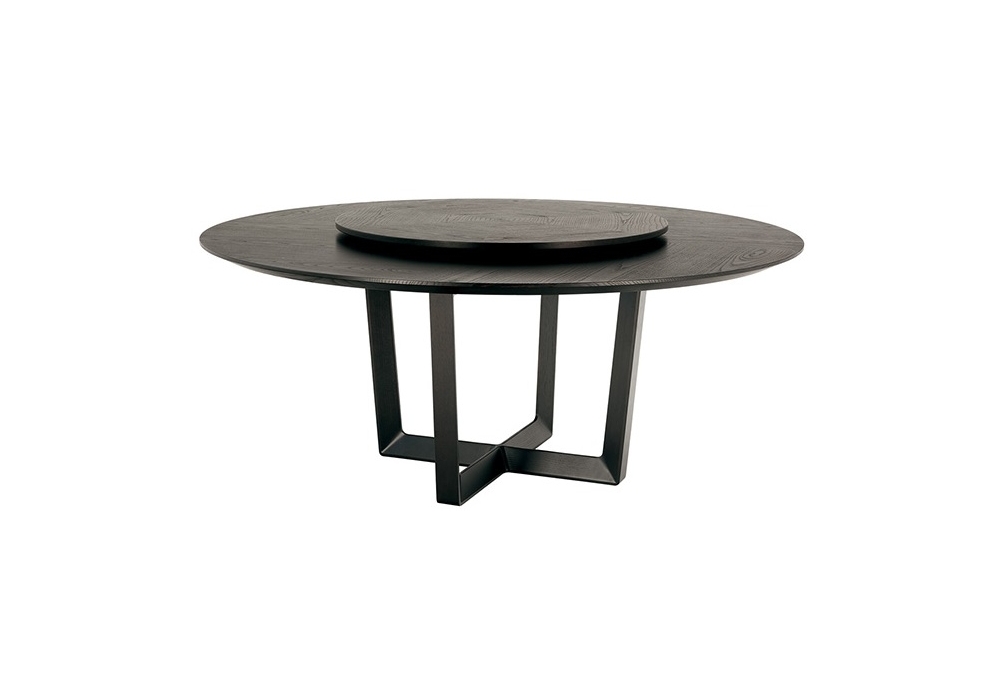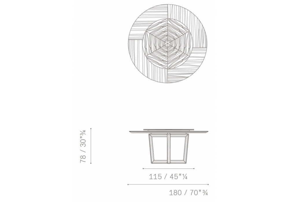 Poltrona Frau Bolero tisch: Das Gestell der Tische besteht aus wengéholzfarbener Massivesche oder aus massivem Canaletto Nussbaum mit dreieckigem Profil. Die Verankerungsplatten und die Abstandstücke sind aus schwarz lackiertem Stahl. Schutzkappen aus Kunststoff. Die Tischplatte ist auf der Oberseite mit wengéholzfarbener Messerfurnier aus Esche oder Canaletto Nussbaum mit charakteristischer Intarsienverarbeitung mit „Überkreuz“-Maserungen. Rundum-Holzbesatz aus wengéholzfarbener Massivesche oder aus Canaletto Nussbaum, Unterteil mit ausgleichendem Furnier. Die 220x110cm und 250x100cm großen Tische und die runde Version (ø150) sind auch mit Platte aus Calacatta Oro-Marmor mit abgerundeter Kante und Halbglanzoder Polyesterglanzfinish erhältlich. Bei der Version mit Halbglanzfinish ist die Marmorplatte auf der Oberfläche mit einer wasserabweisenden Schutzlösung behandelt, die ihr ein natürliches Aussehen verleiht. Beim Glanzfinish wird hingegen ein transparenter Polyesterlack aufgetragen, der die Oberfläche beständiger macht und ein Eindringen von Flüssigkeiten verhindert. Die stützende Unterplatte besteht aus lackiertem Multischicht-Birkenholz mit texturierter mattschwarzer Antikratzlackierung. Bei den Versionen aus Marmor sind die Tischbeine aus wengéholzfarbener Esche oder aus Canaletto Nussbaum. Die runde Version (ø180) ist auch mit der Drehplatte Lazy Susan erhältlich, die nicht an der Hauptplatte befestigt ist, sondern nur aufliegt. Sie besteht aus zwei zusammengebauten, runden Platten unterschiedlichen Durchmessers: Die obere (ø115) besteht aus Multischicht-Birkenholz mit Rundum-Holzbesatz aus wengéholzfarbener Massivesche oder aus massivem Canaletto Nussbaum mit derselben Verarbeitung wie bei der Hauptplatte und ausgleichendem Furnier im unteren Bereich. Die kleinere Unterplatte ist aus MDF mit schwarzer Antikratzlackierung und Filzdämpfern. Zwischen den beiden Platten ist ein Drehmechanismus auf Stahlkugeln angebracht.