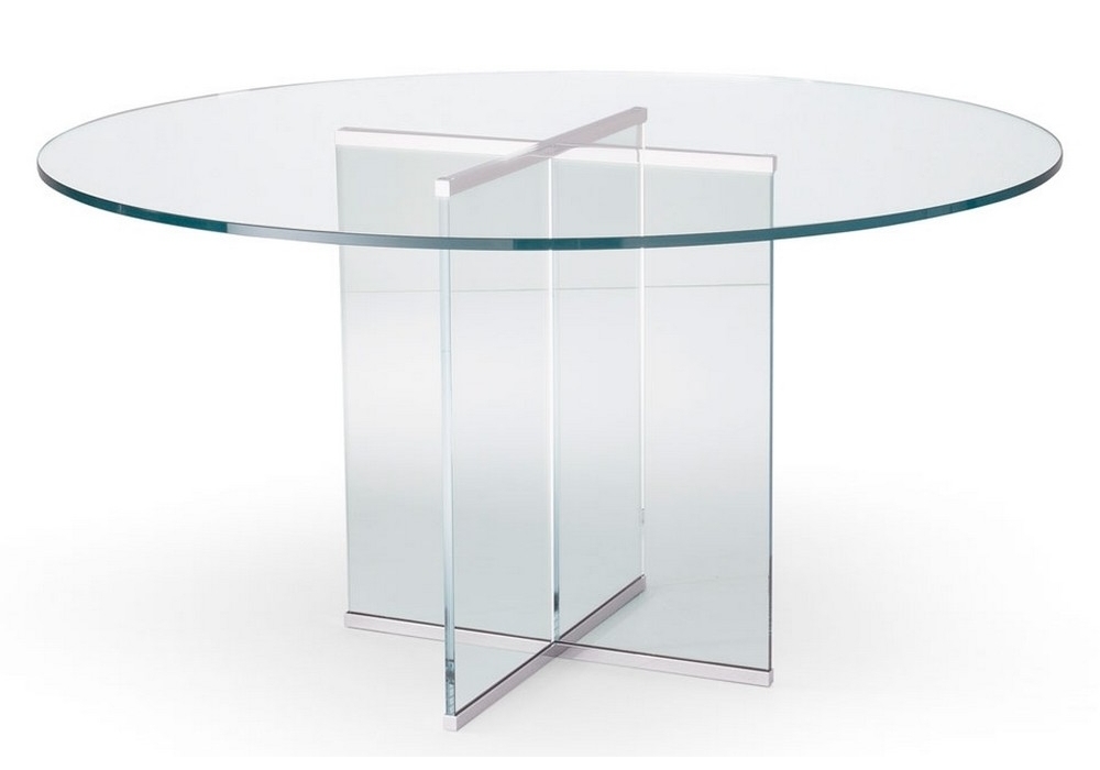 Eros von Pierangelo Gallotti für Gallotti&Radice entworfen, ist ein Tisch mit Glasplatte klar. Metallteile Messing verchromt. Gestell vorgespanntes Glas 15mm. Auf Anfrage Glasplatte auch in Sondergrössen lieferbar. Für Glasplatte ab 240cm ist der Tisch mit zwei Fussgestellen.
