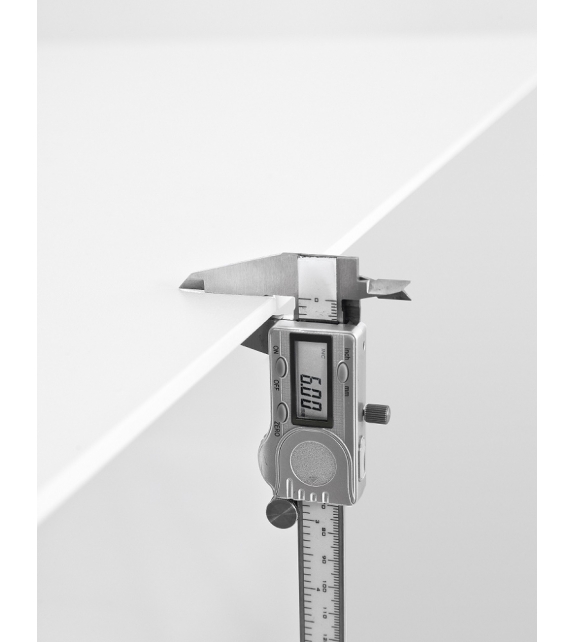 Thin-K von Luciano Bertoncini für Kristalia entworfen, ist eine Tischkollektion, die in fester oder ausziehbarer Version angeboten wird. Oberseite und äußerer Teil der Beine aus Holz, Beine aus lackiertem Stahl, in mehreren Farben erhältlich.