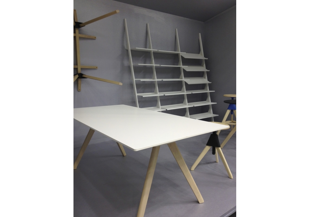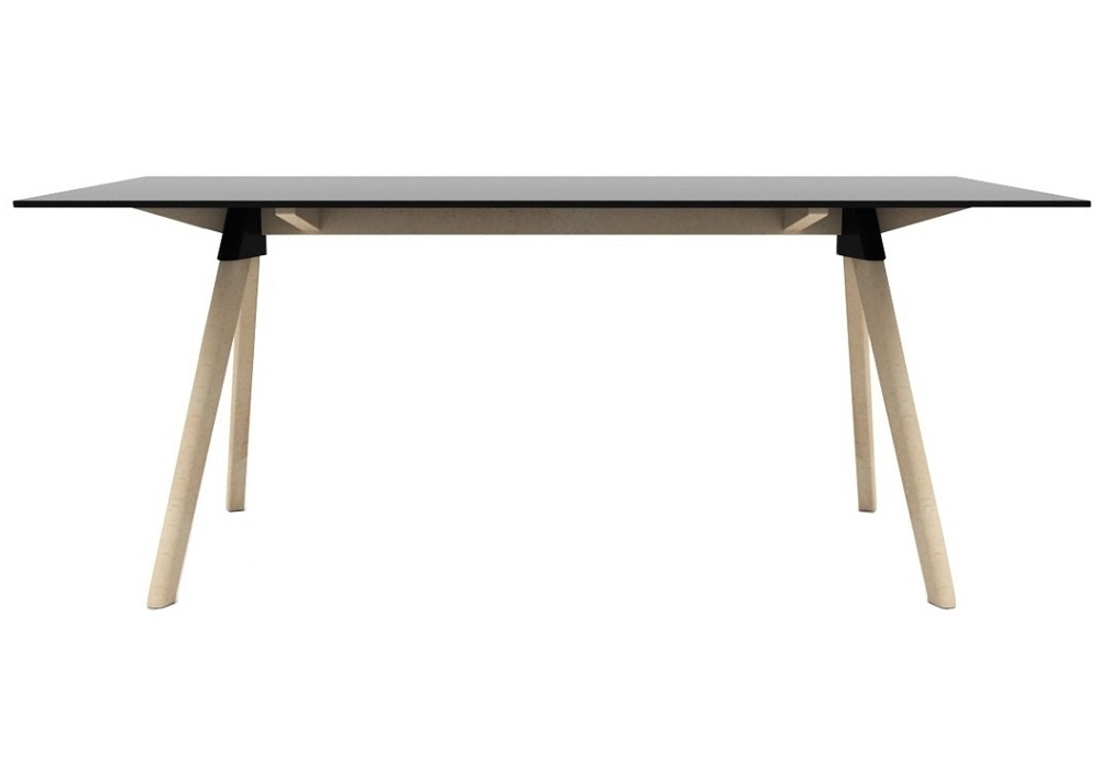 Butch - The Wild Bunch von Konstantin Grcic für Magis entworfen, ist ein Tisch mit Struktur (Beine und Querstreben) aus massiver natürlicher oder lackierter Buche. Gelenk aus Polypropylen mit Glasfaserzusatz. HPL-Oberteil. Erhältlich in verschiedenen Ausführungen.