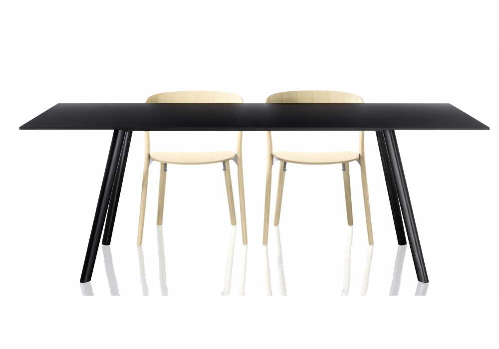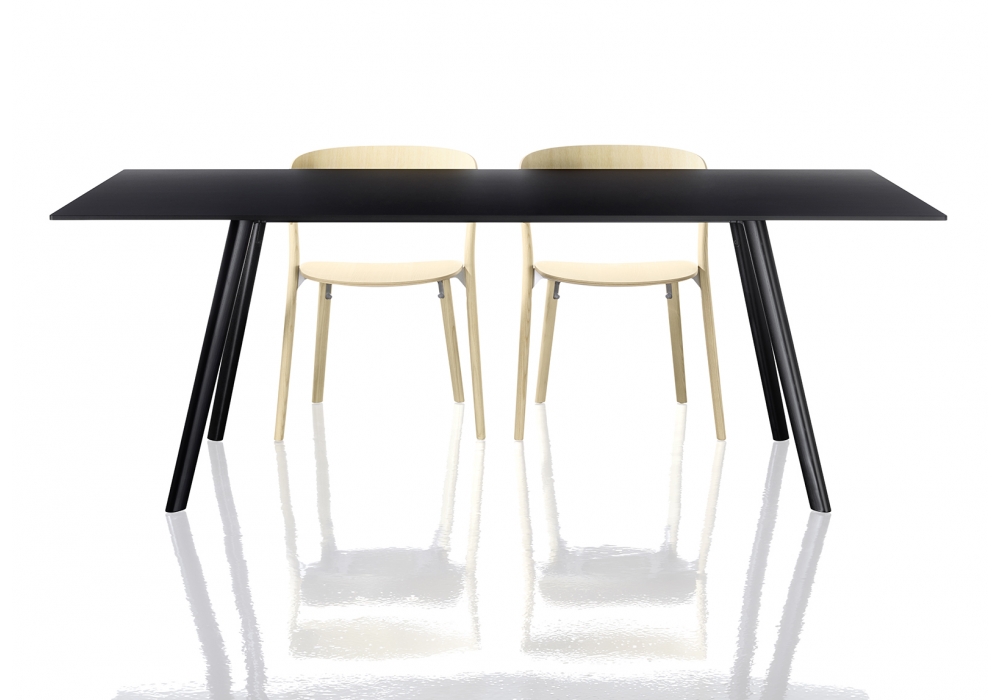 Pilo von Ronan & Erwan Bouroullec für Magis entworfen, ist ein Tisch mit Beinen aus massiver natürlicher oder lackierter Esche. Querstreben aus epoxidharzlackiertem Stahlrohr. Gelenke aus sandgestrahltem oder mit Epoxidharz lackiertem Aluminiumdruckguss. HPL-Oberteil. Erhältlich in verschiedenen Ausführungen und Größen.