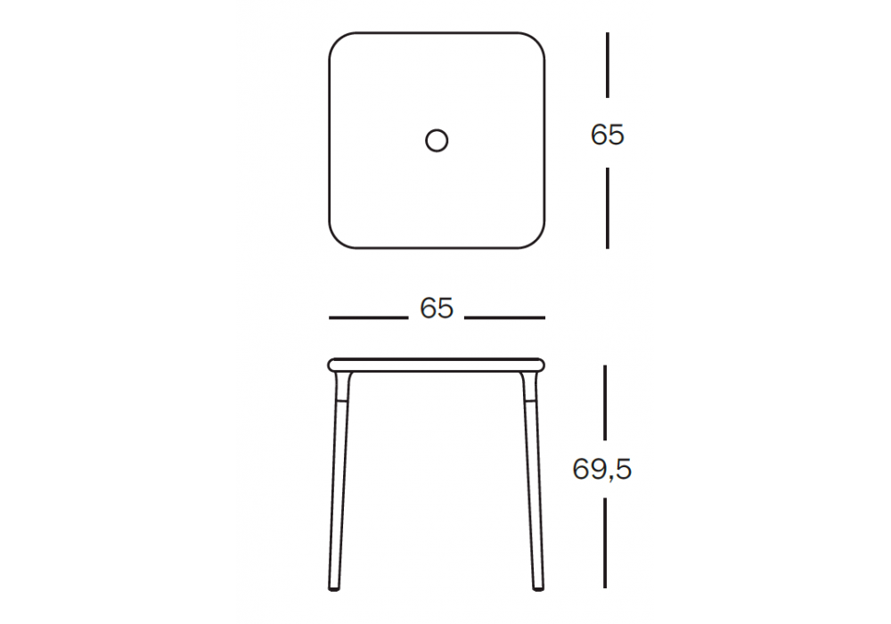 Air-Table von Jasper Morrison für Magis entworfen, ist ein stapelbarer Tisch mit quadratischer Form aus Polypropylen mit Glasfaser, auch für den Außenbereich geeignet