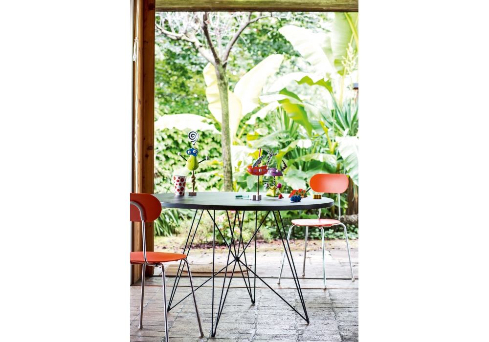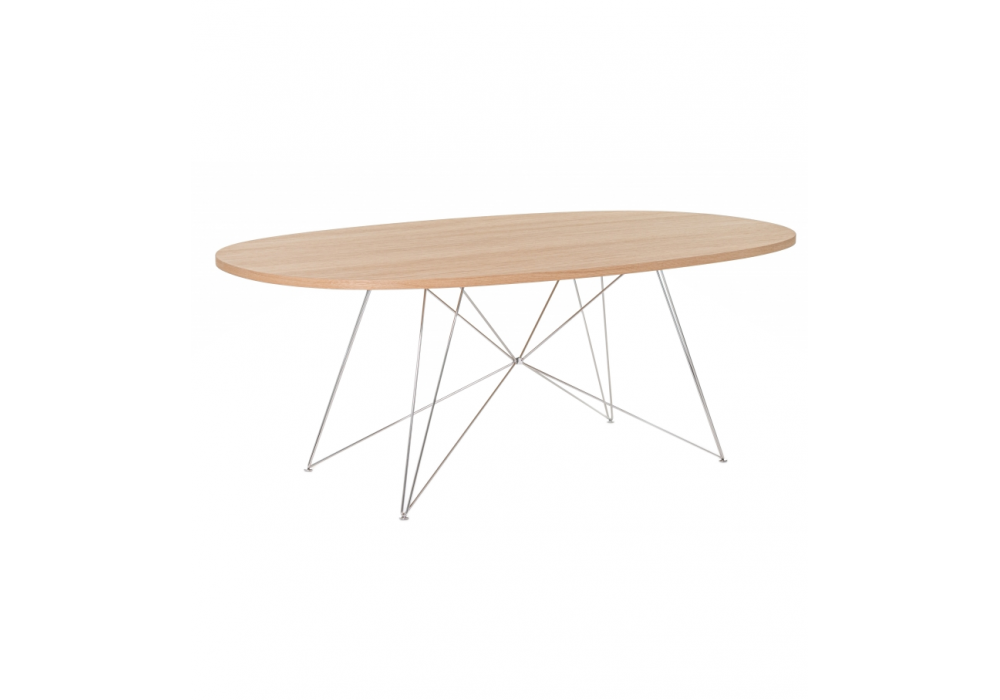 XZ3 von Magis entworfen, ist ein Tisch mit Gestell aus verchromtem oder mit Epoxidharz lackiertem Stahlrohr, Platte aus lackiertem MDF oder Eichenfurnier.