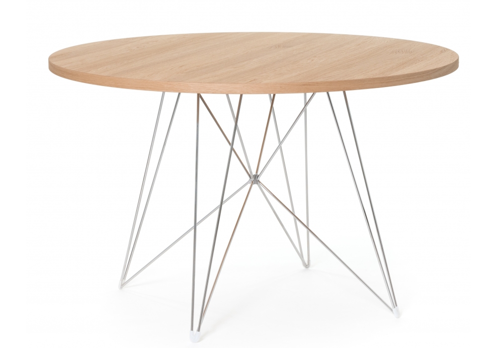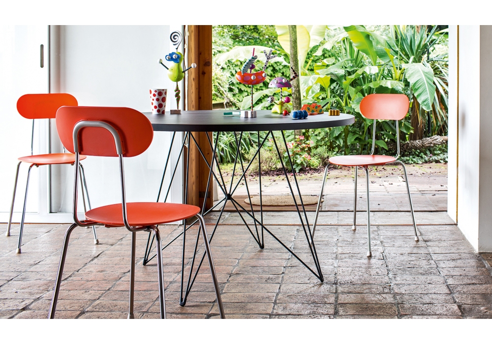 XZ3 von Magis entworfen, ist ein runder Tisch mit Struktur aus verchromtem, lackiertem, goldenem oder verkupfertem Stahlrohr. Platte aus Carrara-Marmor, Nussbaum massiv oder MDF. Erhältlich in verschiedenen Ausführungen.