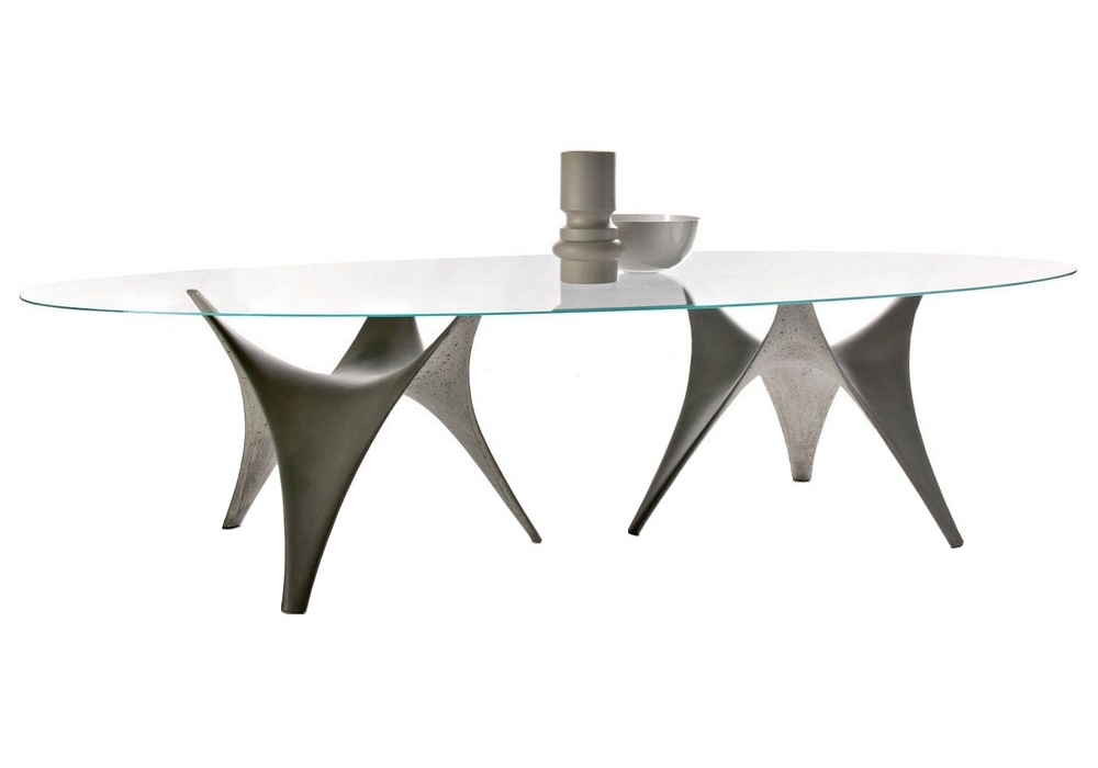 Arc von Foster + Partners für Molteni&C entworfen, ist ein ovaler Tisch mit doppelter Basis und einer Zugstrukturform der Basis, für dessen Realisierung eine innovative Verbindung aus Zement und Fasern verwendet wurde, die in einem einzigen Block gedruckt und in der Masse. Verfügbar in mehreren Ausführungen und Abmessungen.