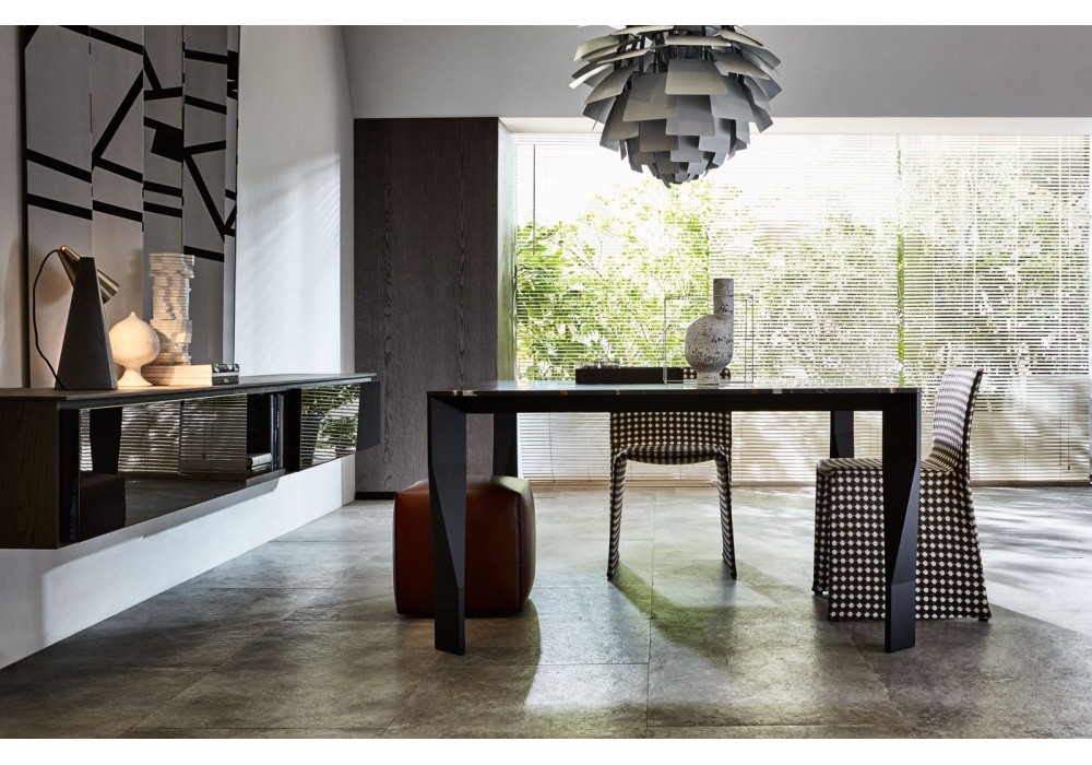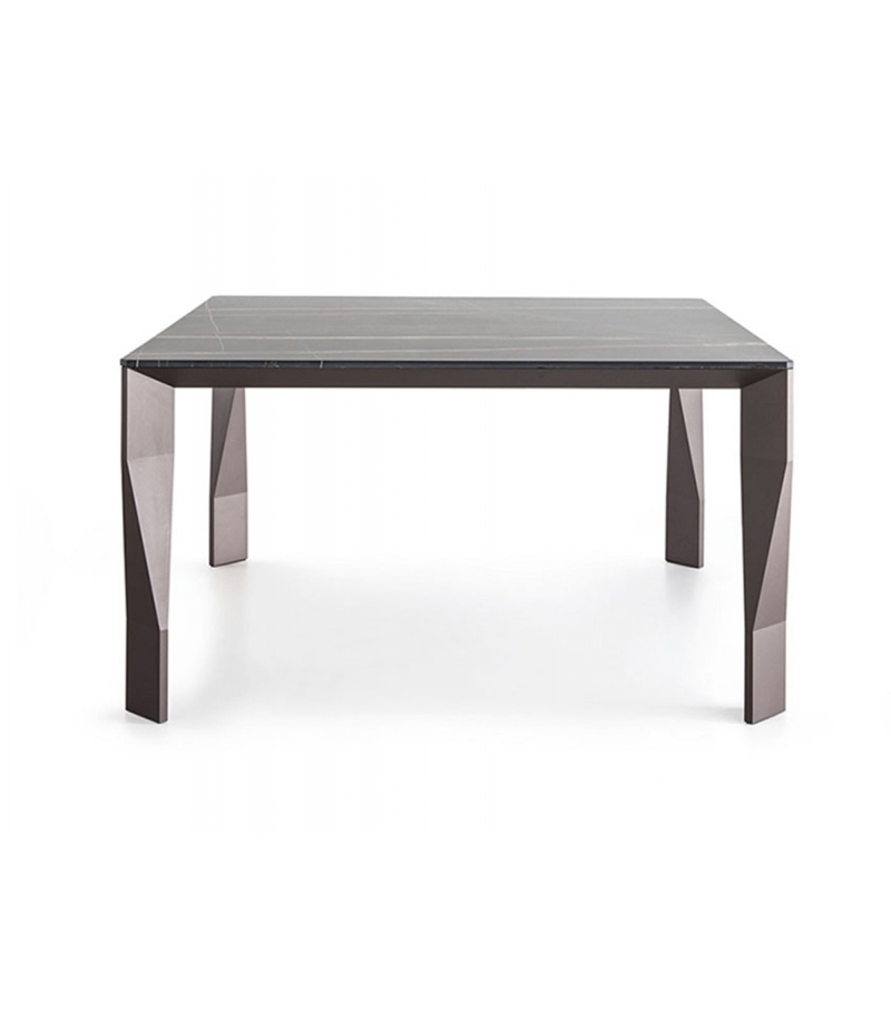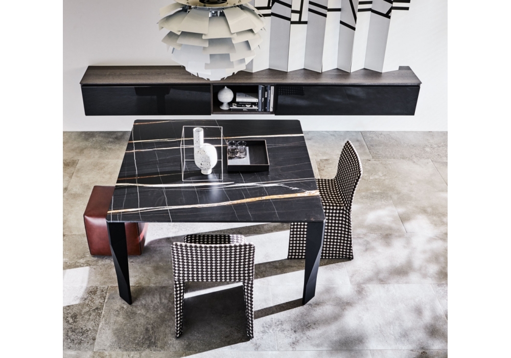 Diamond von Patricia Urquiola für Molteni&C entworfen, ist ein quadratischer Tisch mit einem Bein, das an ein zartes Origami erinnert. Ein Element, das fachmännisch aus einem leicht gefalteten Aluminiumblech und einem Innenraum aus Aluminiumeinsätzen und Polyurethanschaum besteht, um Festigkeit zu verleihen. Verfügbar in mehreren Ausführungen und Abmessungen.