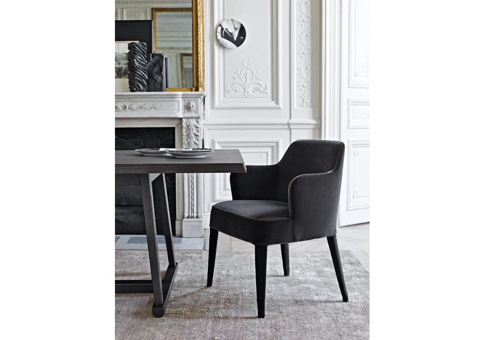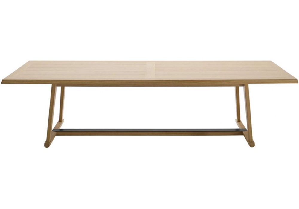 Recipio '14 von Antonio Citterio für Maxalto entworfen ist ein Tisch mit Tischplatte aus Massivholz, Sperrholzplatte mit Wabenstruktur und furnierten Holzpartikeln. Massivholzstruktur: Eiche grau, Eiche hell gebürstet oder Eiche schwarz gebürstet. Querstrebenschutz aus bronziertem nickellackiertem Stahlprofil.