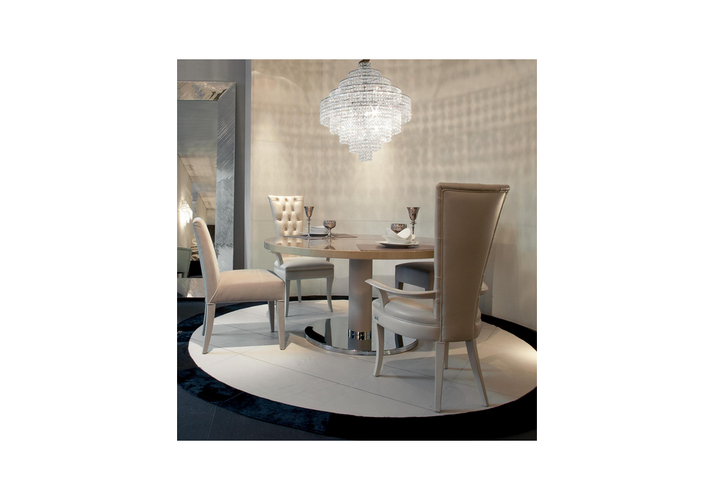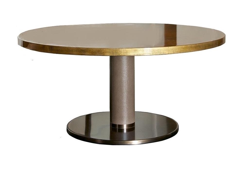 Fujico von Rugiano entworfen, ist ein runder Tisch mit Struktur in Bronze- oder Chromausführung und Platte aus Marmor oder mit Leder bezogen. Erhältlich in verschiedenen Abmessungen.