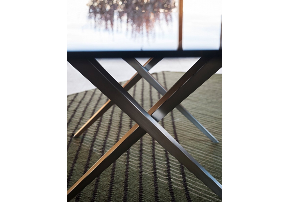 Tender 420 von Decoma für Desalto entworfen, ist ein ausziehbarer Tisch mit Beinen aus Aluminiumdruckguss und Stahlrohren. Erhältlich in verschiedenen Ausführungen und Größen.