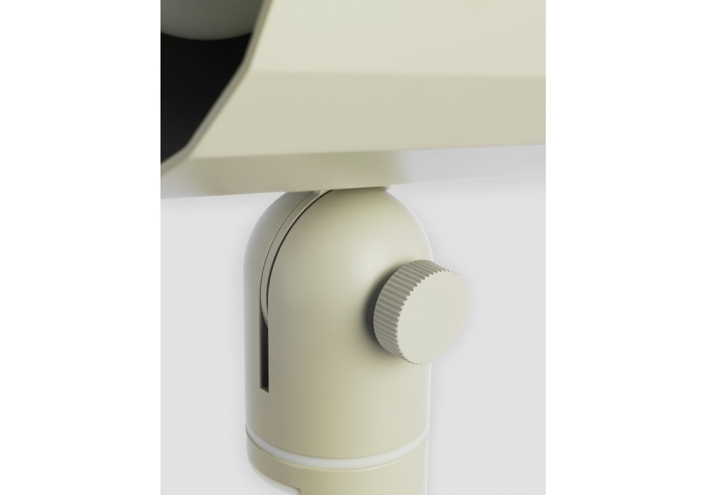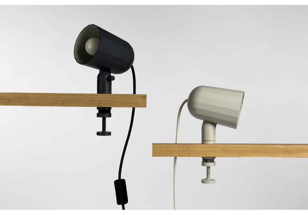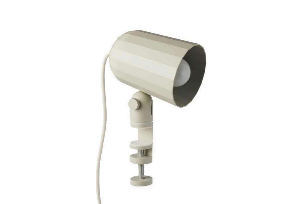Noc von SmithMatthias für Hay entworfen, ist eine Leuchte mit Klemmler mit Struktur aus bearbeitetem Aluminium, Lampenschirm aus Aluminiumdruckguss und Kabel aus schwarzem Silikon für die dunkelgraue Version und Weiß für die cremefarbene Version. Verfügbar in verschiedenen Ausführungen.