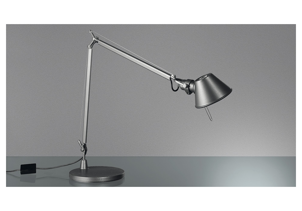 Tolomeo midi LED entworfen von Michele De Lucchi und Giancarlo Fassina für Artemide ist eine Tischleuchte, die vollständig aus Aluminium besteht. Die Struktur verfügt über bewegliche Arme mit Gelenken und Stützen aus poliertem Aluminium. Der Diffusor ist sowohl horizontal als auch vertikal drehbar und beherbergt eine LED-Lichtquelle in verschiedenen Lichttönen. Tolomeo midi LED ist mit fester Halterung, Klemme oder Rundfuß erhältlich.